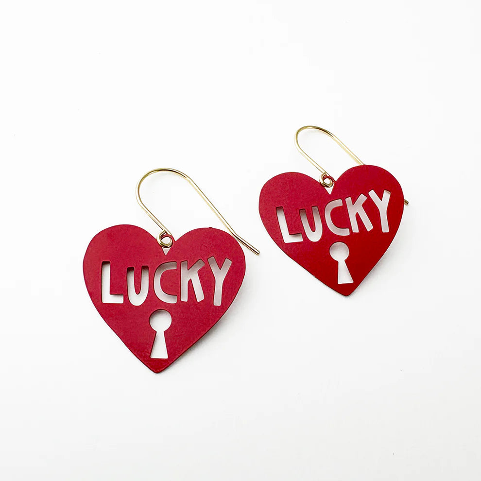 Midi Lucky Heart earrings in Red | Denzandco