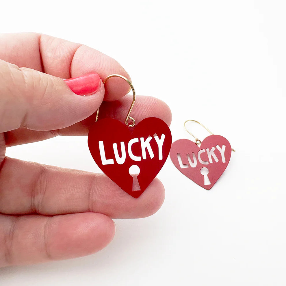 Midi Lucky Heart earrings in Red. Super lightweight.