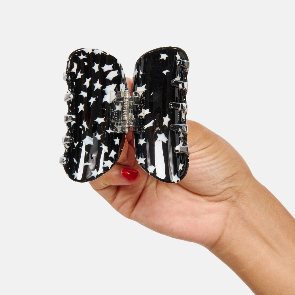 This small-ish-sized hair claw is recommended for all hair types and textures. Perfect for fine hair buns and thicker hair half-updo's!