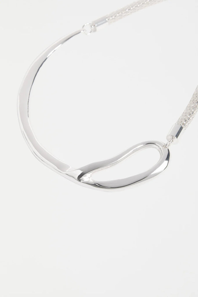 Make a statement in the Delaa Choker Necklace. This unique design features a large sculptural pendant linked to a thick tubular mesh chain in a metallic shine finish. This short necklace is perfect for adding interest and elevating simple outfits